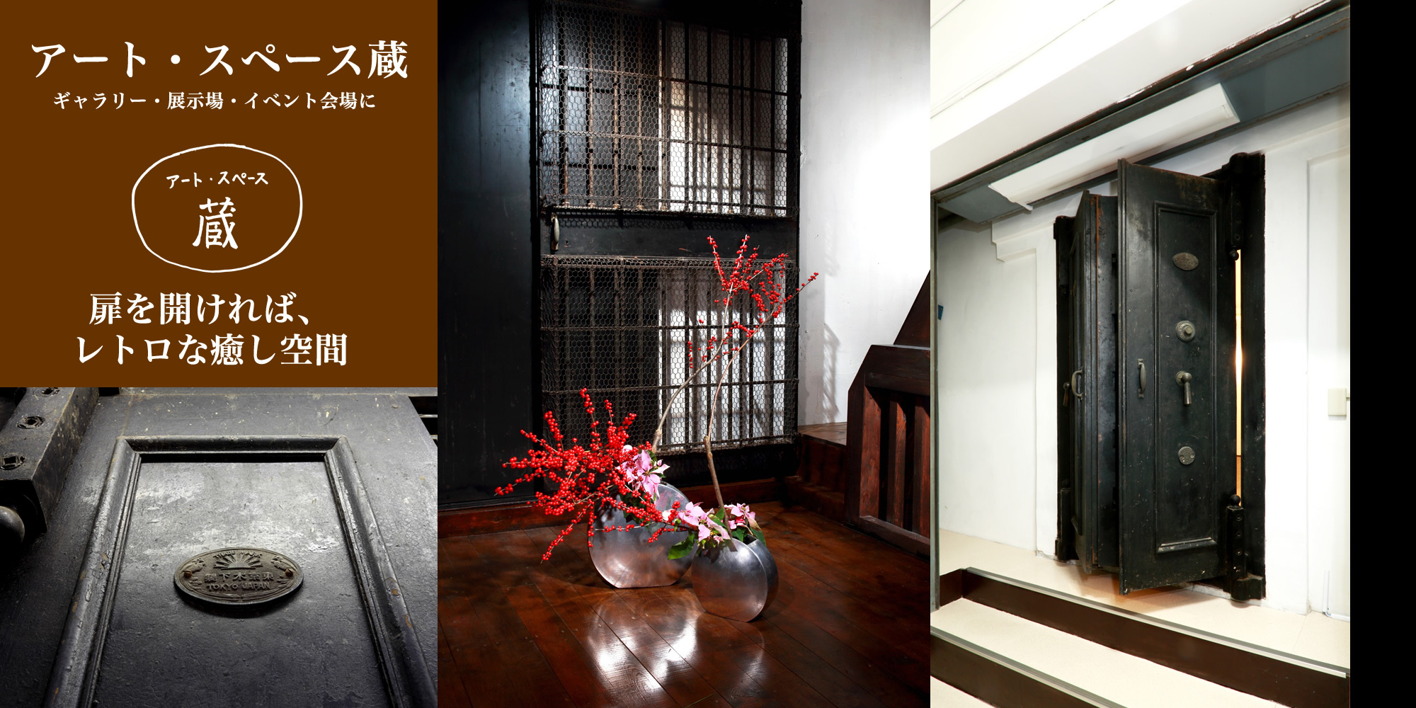 この度、平成29年5月に「アート・スペース蔵」 として新たに生まれ変わり、レンタルスペース・ギャラリー・ミニライブ・イベント会場として皆様に御利用頂ける施設となりました。 この“蔵”は都心の賑わいの中にありながら、隠れ家のような静けさと安らぎがあり、秘めたパワーに満ちあふれた素敵な空間です。 皆様の文化・芸術活動の場に是非御利用下さい。